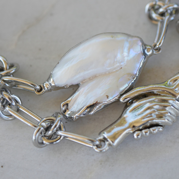Capsule Seven is inspired by my best-selling necklace "Venus" from my first launch in 2021. Originally, the Venus necklace was designed to oppose the Aphrodite necklace by offering an edgier interpretation of the delicacy that Aphrodite encapsulated. This collection plays on the same aesthetic that was embodied by the original design; the dichotomies between hard and soft, severe and gentle. The mix of metal chains and pearls explores this relationship between the two opposites, coming together to create my largest collection to date.